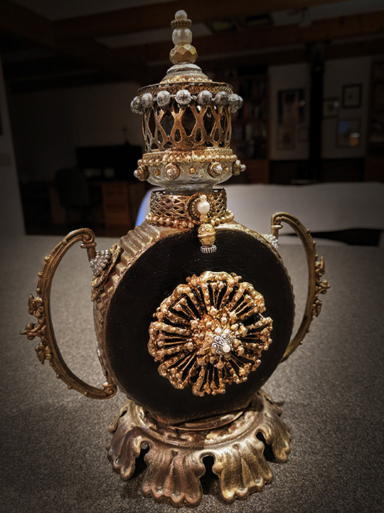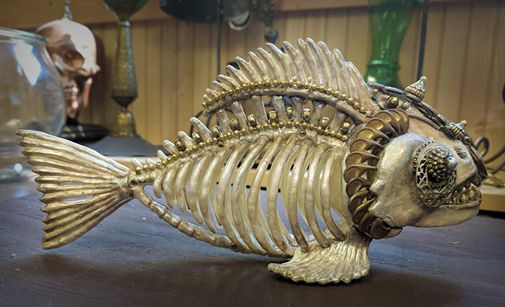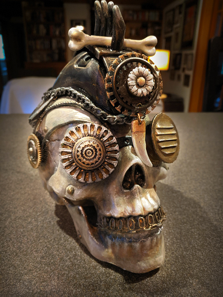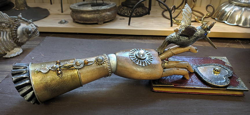 Designed the visuals for a steampunk costume ball. I built a 22ft hanging dirigible and created dozens of steampunk assemblage sculptures exclusively out of thrift store and found objects that I collected over the years.